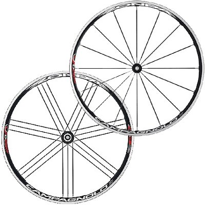 Campagnolo Zonda Wheel Sets. Overisize hubs and radial/G3 spoke patterns. Rim material machined between spokes to reduce weight.