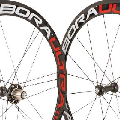 For a race against time ... BoraTM UltraTM Two is the must-have for specialized professional use and those looking for that extra competitive edge. These wheels have been conceived for those looking for the maximum aerodynamic performance. Critical in this context is the imposing 50mm rim with a wing profile calculated on the basis of the dictates of fluid physics.High performance is also obtained from the hubs, made of structural carbon fiber with variable sections and spherical surfaces with RecordTM class mechanics. Plus, our exclusive CULTTM technology is taking the extraordinary performance of BoraTM UltraTM Two another step higher.The dynamic balance that stabilizes BoraTM UltraTM Two wheels at high speed is now provided by the newly designed distribution of carbon fiber on the side opposite the valve instead of oversized spokes. This results in better aerodynamic penetration, less weight and improved aesthetics